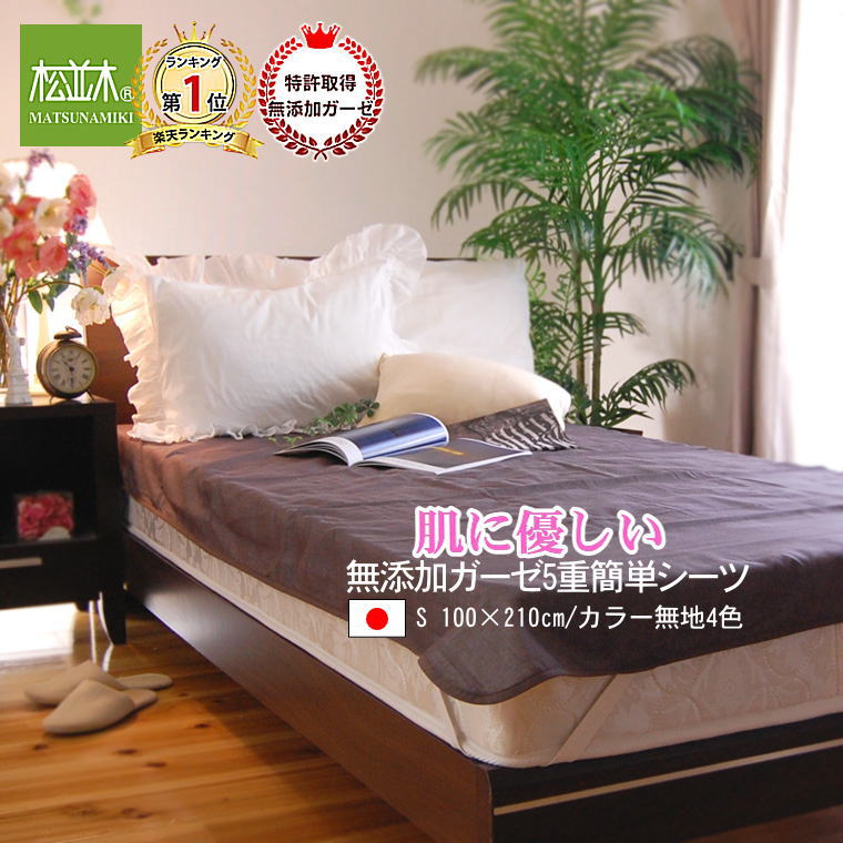 楽天1位【特許の品質】松並木 無添加 5重 ガーゼ 簡単シーツ シングル 100×210cm「カラー4色」肌に優しい 本物のガーゼ 5枚重ね 4角ゴム ぱっとシーツ 日本製幻のキヤー製法 特許 無添加ガーゼ Nuddy Cotton 綿100% 通年対応 エコテックス認証 敏感肌 マットシーツ