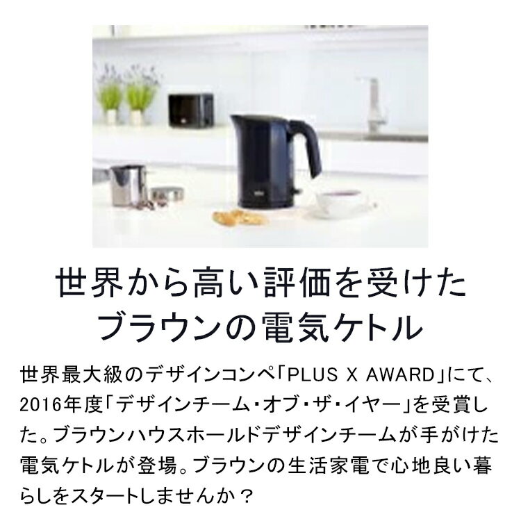 世界から高い評価を受けたブラウンの電気ケトル 世界最大級のデザインコンペ「PLUS X AWARD」にて、 2016年度「デザインチーム・オブ・ザ・イヤー」を受賞した ブラウンハウスホールドデザインチームが手がけた電気ケトルが登場。