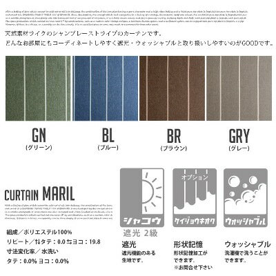 Maril(マリール) プリーツカーテン【1.5倍ひだ】 (幅:101−200cm)全4色(GN、BL、BR、GRY)送料無料