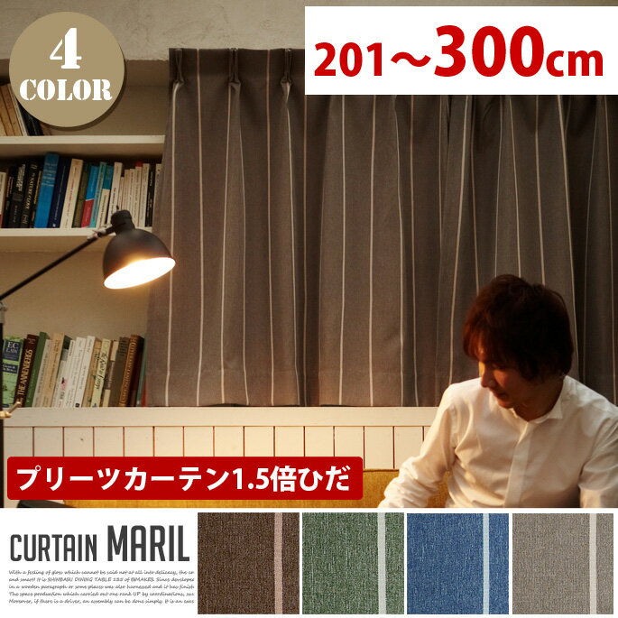 Maril(マリール) プリーツカーテン【1.5倍ひだ】 (幅:201−300cm)全4色(GN、BL、BR、GRY)送料無料