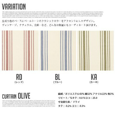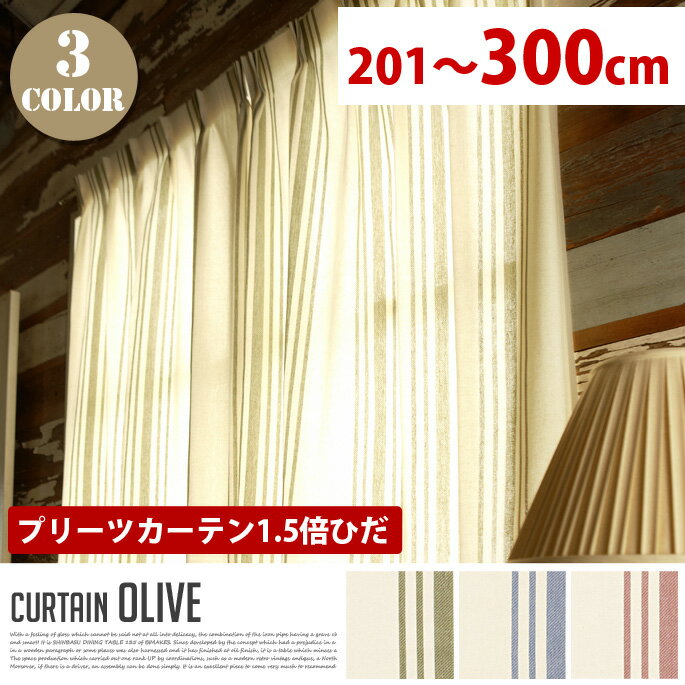 Olive(オリーブ) プリーツカーテン【1.5倍ひだ】 (幅:201−300cm) 全3色(RD、KA、BL)送料無料