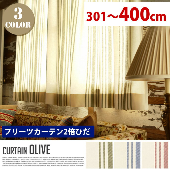 Olive(オリーブ) プリーツカーテン【2倍ひだ】 エレガントスタイル (幅:301−400cm) 全3色(RD、KA、BL)送料無料