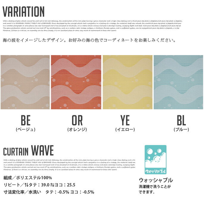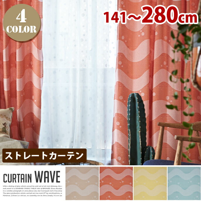 Wave (ウェーブ) ストレートカーテン【ひだ無】 フラットスタイル (幅:141−280cm)全4色(BE、OR、YE、BL)送料無料