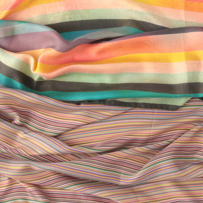 滑らかでふんわりとしたシルク100%を使用したストライプスカーフ。