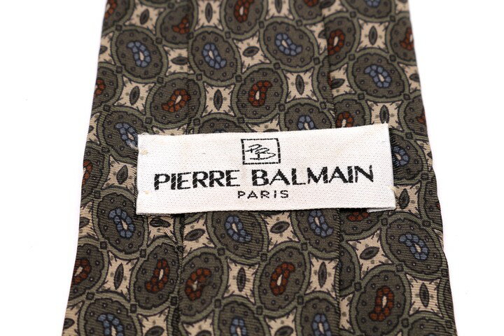 ピエールバルマン Pierre Balmain ペイズリー柄 グリーン 緑 シルク イタリア製 ブランド ネクタイ 送料無料 【中古】【良品】